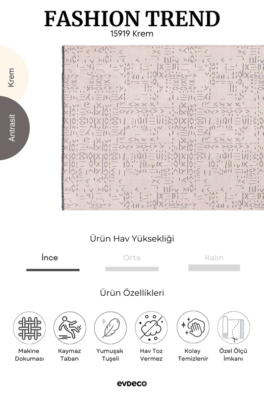 Evdeco Fashion Trend Cream Ethnic Patterned Carpet