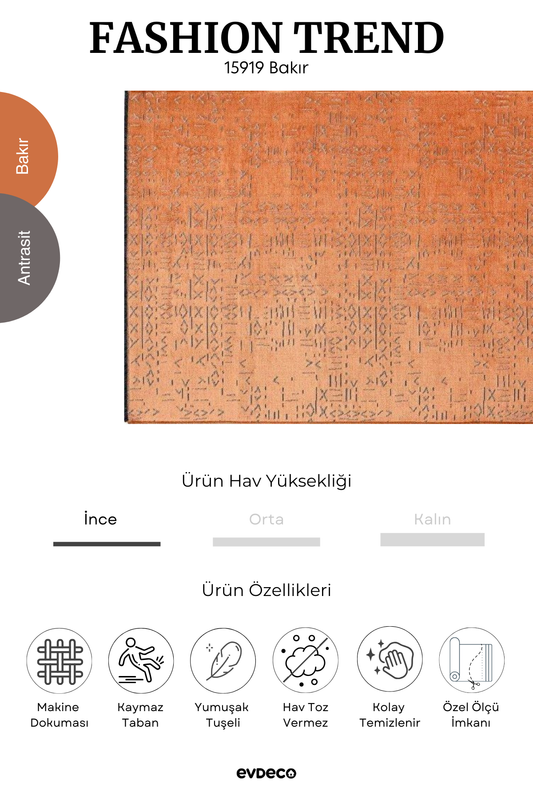 Evdeco Fashion Trend Copper Ethnic Patterned Carpet