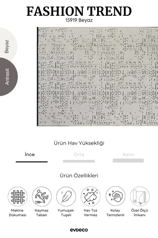 Evdeco Fashion Trend White Ethnic Patterned Carpet
