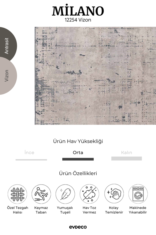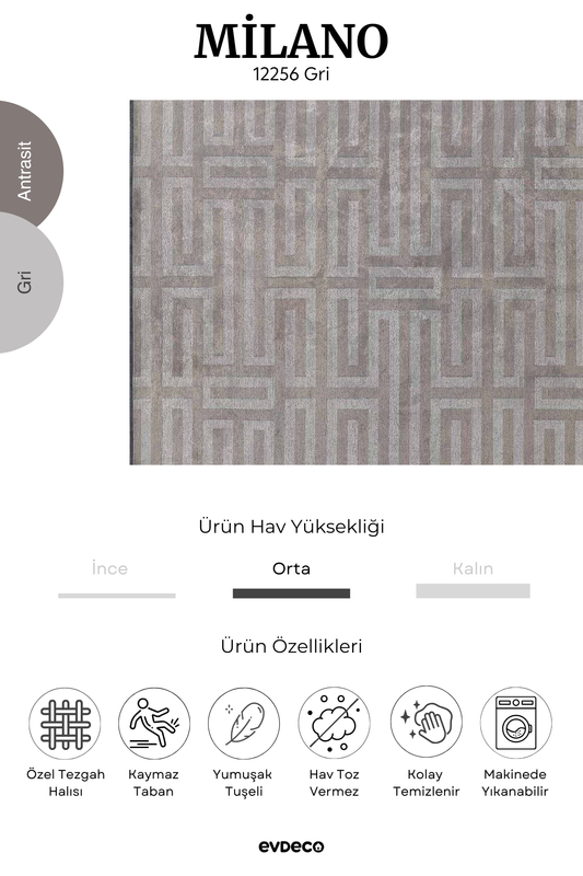 Evdeco Milano Modern Patterned Gray Living Room Carpet