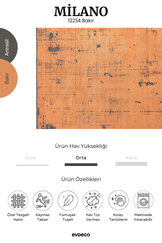 Evdeco Milano Modern Patterned Copper Living Room Carpet