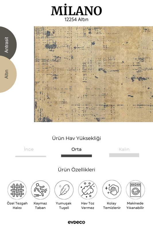 Evdeco Milano Modern Patterned Gold Living Room Carpet