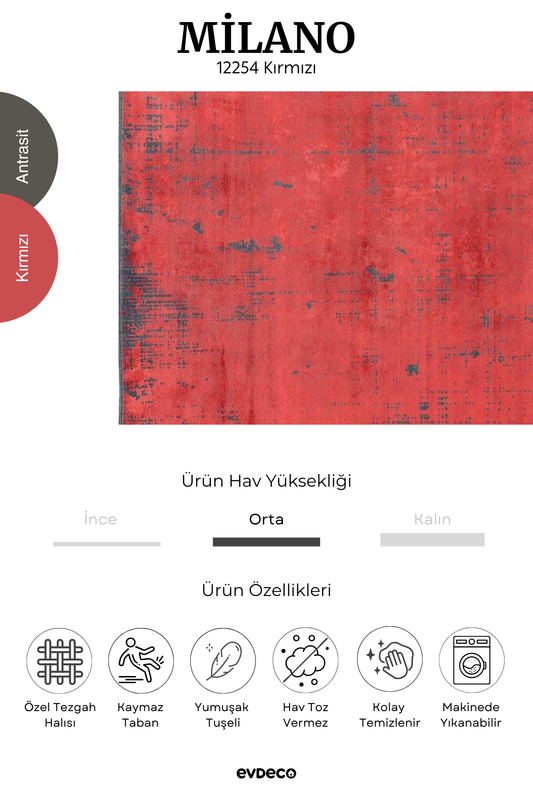 Evdeco Milano Modern Patterned Red Living Room Carpet