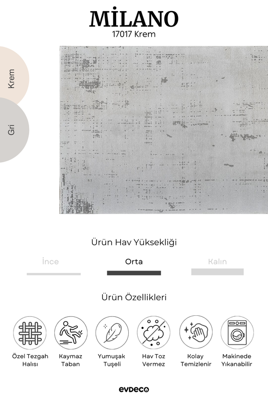 Evdeco Milano Modern Patterned Cream Living Room Carpet