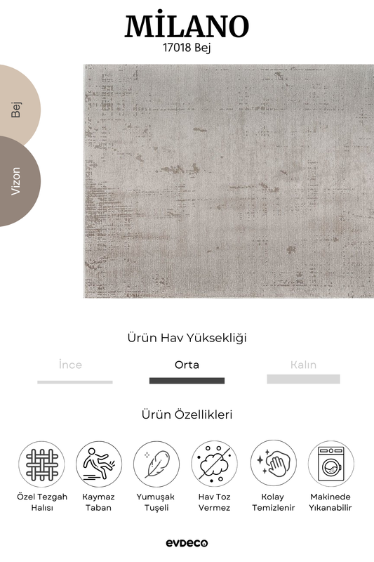 Evdeco Milano Modern Patterned Mink Living Room Carpet